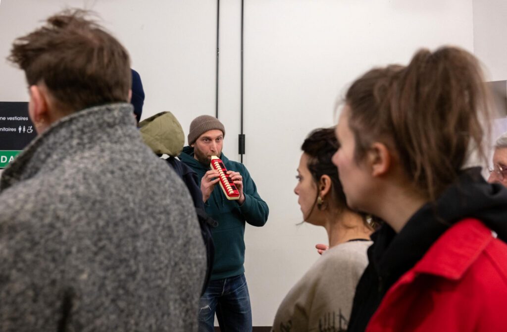 Nous connaissons les lieux, nous ne reconnaissons pas toujours les sons, nous retrouvons des ami.es, et nous imaginons avec eux le décor de l’histoire écrite par Maurice Maeterlinck, au début du siècle dernier. Il y a l’expérience singulière et retrouvée de l’attente, d’un certain ennui teinté de crainte, d’une attention affûtée aux mondes qui nous entourent et dont nous faisons partie.